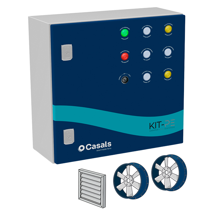 The KIT-PE DAMPER 1 DUAL STAIRSHIELD has everything necessary to function autonomously, so the installer's job will be much easier and he will only have to connect the kit to the fan and to the fire detection control panel.