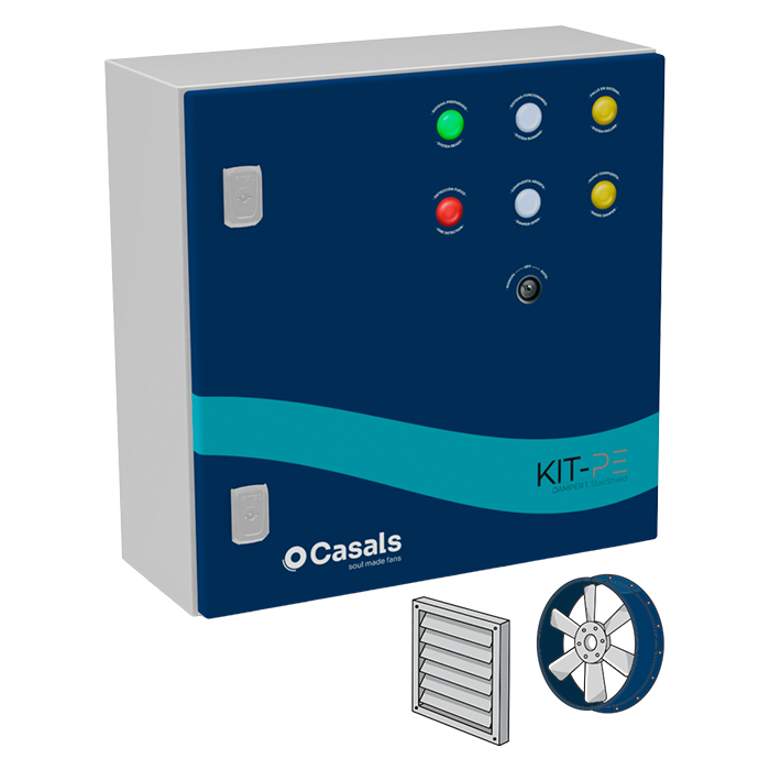 The KIT-PE DAMPER 1 STAIRSHIELD (v2) has everything necessary to function autonomously, so the installer's job will be much easier and he will only have to connect the kit to the fan and to the fire detection control panel.