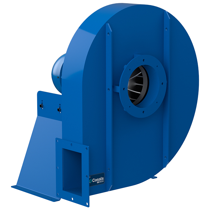 • High efficiency simple inlet backward impeller with self-cleaning system manufactured in cast aluminium.