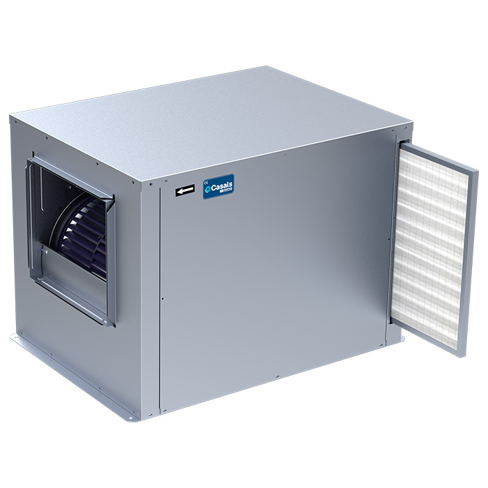 • BOX with integrated MERV 6 (G4) filter. Removable filter frame from both sides of the box for better maintenance. Replaceable ans whasable filtering foam. Optimized suctoning air inlet to maximize the performance of the fan.